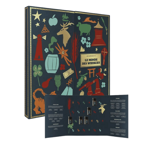 Invitation au voyage, ce coffret réunit 25 références en provenance d’Écosse, d’Irlande, des États-Unis et du Japon, mais aussi de France, du Pays de Galles, d’Inde, de Taïwan ou encore d’Australie. Élaborés selon des techniques et à partir de céréales variées, ces whiskies mettent en lumière la pluralité des terroirs et des styles de production à travers le monde. La sélection rassemble des marques emblématiques comme The Dalmore ou Nikka Whisky, et des distilleries plus confidentielles et des producteurs de référence tels que Arran, Willett ou encore Armorik. Chaque dégustation (fioles de 2 cl) est accompagnée d’une masterclass en ligne, accessible via un QR code, pour un voyage guidé par les experts de La Maison du Whisky.